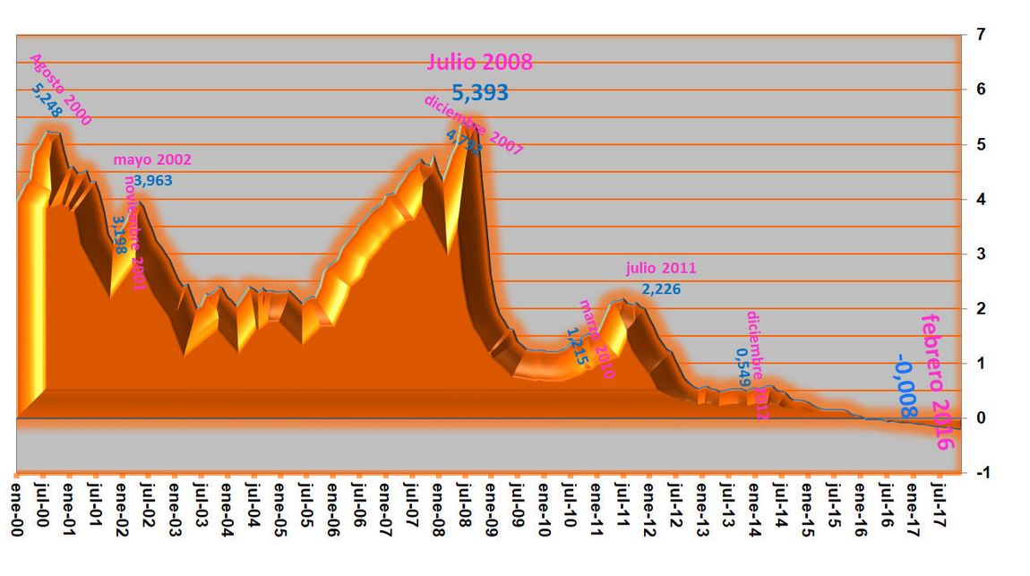 Aniversario del máximo historico de Euribor: 5,393% hace una década